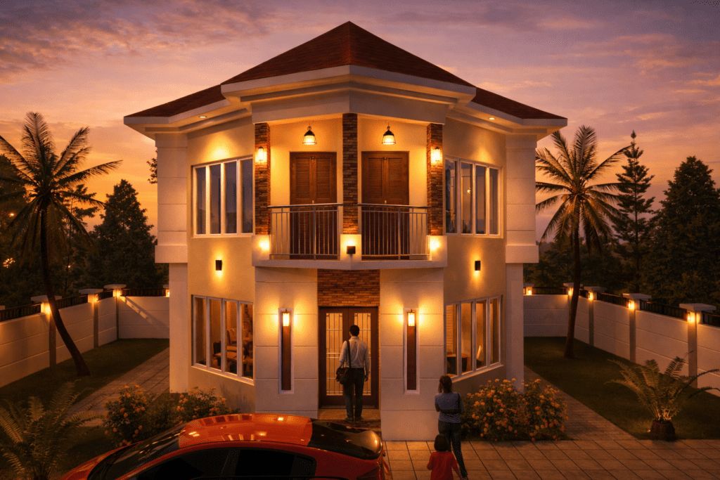 The Uncle Law Guesthouse is a proposed two-storey private hospitality residence that draws its character from the rich tradition of Nigerian communal living and entertainment. More than a simple accommodation building, this project is conceived as a space where guests are received and hosted with genuine generosity — a quality embedded in the architecture itself from the ground floor up.